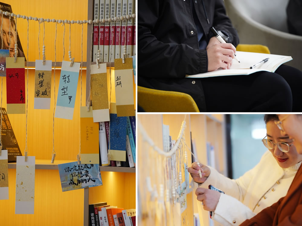 活動(dòng)開場(chǎng)后,每位參與者以“2025年最想突破的職場(chǎng)關(guān)鍵詞”為引,寫下新年的成長期許。回盛書友們將關(guān)鍵詞書簽懸掛于讀書室主題墻,再以"可落地行動(dòng)項(xiàng)+計(jì)劃閱讀書目"構(gòu)建年度閱讀企劃。